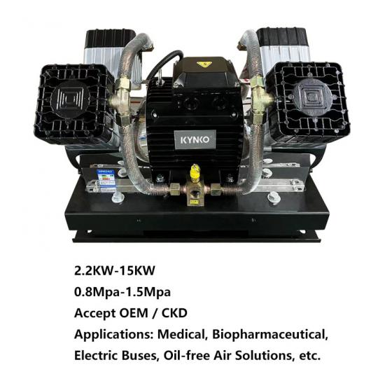 Les compresseurs d'air à piston sans huile KYNKO sont largement utilisés dans les véhicules électriques pour une compression efficace de l'air sans huile de lubrification. Il s'agit d'une tendance de développement du secteur dans ce nouveau secteur. Non seulement ils sont respectueux de l'environnement et économes en énergie, mais ils répondent également aux besoins des utilisateurs. Une autre utilisation importante de ce produit est la connexion à un concentrateur d'oxygène pour fournir un air propre, exempt de pollution et d'huile.